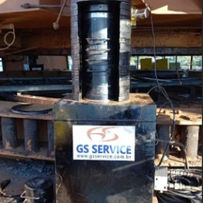 Serviços especiais de oxicorte, no caso de ajustes dos olhais de montagem dos cilindros hidráulicos.